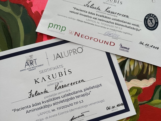 Ar patstāvīgu vēlmi attīstīties un apgūt jaunākās metodes es nodrošinu augstākās kvalitātes pakalpojumus, kas veicina ne tikai ādas veselību, bet arī labsajūtu un pārliecību par sevi.